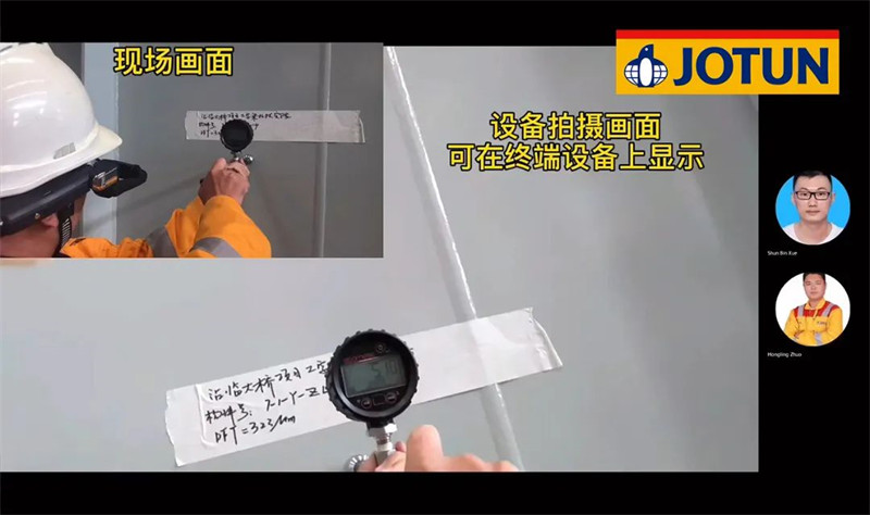 在這個(gè)“防疫常態(tài)化”的時(shí)代,出差已經(jīng)不再像以前說(shuō)走就能走了,施工現(xiàn)場(chǎng)的緊急情況無(wú)法及時(shí)處理,輕則影響工期,重則影響工程質(zhì)量,后續(xù)隱患無(wú)窮。佐敦為此引進(jìn)新科技——頭戴式AI計(jì)算機(jī),現(xiàn)場(chǎng)人員走到哪里,后端人員就能看到哪里,涂層檢查、遠(yuǎn)程指導(dǎo)、現(xiàn)場(chǎng)勘驗(yàn)、附著力測(cè)試、線上培訓(xùn)等都能即時(shí)實(shí)現(xiàn),有效提高了服務(wù)的時(shí)效性,更是降低了客戶與佐敦的工作成本。